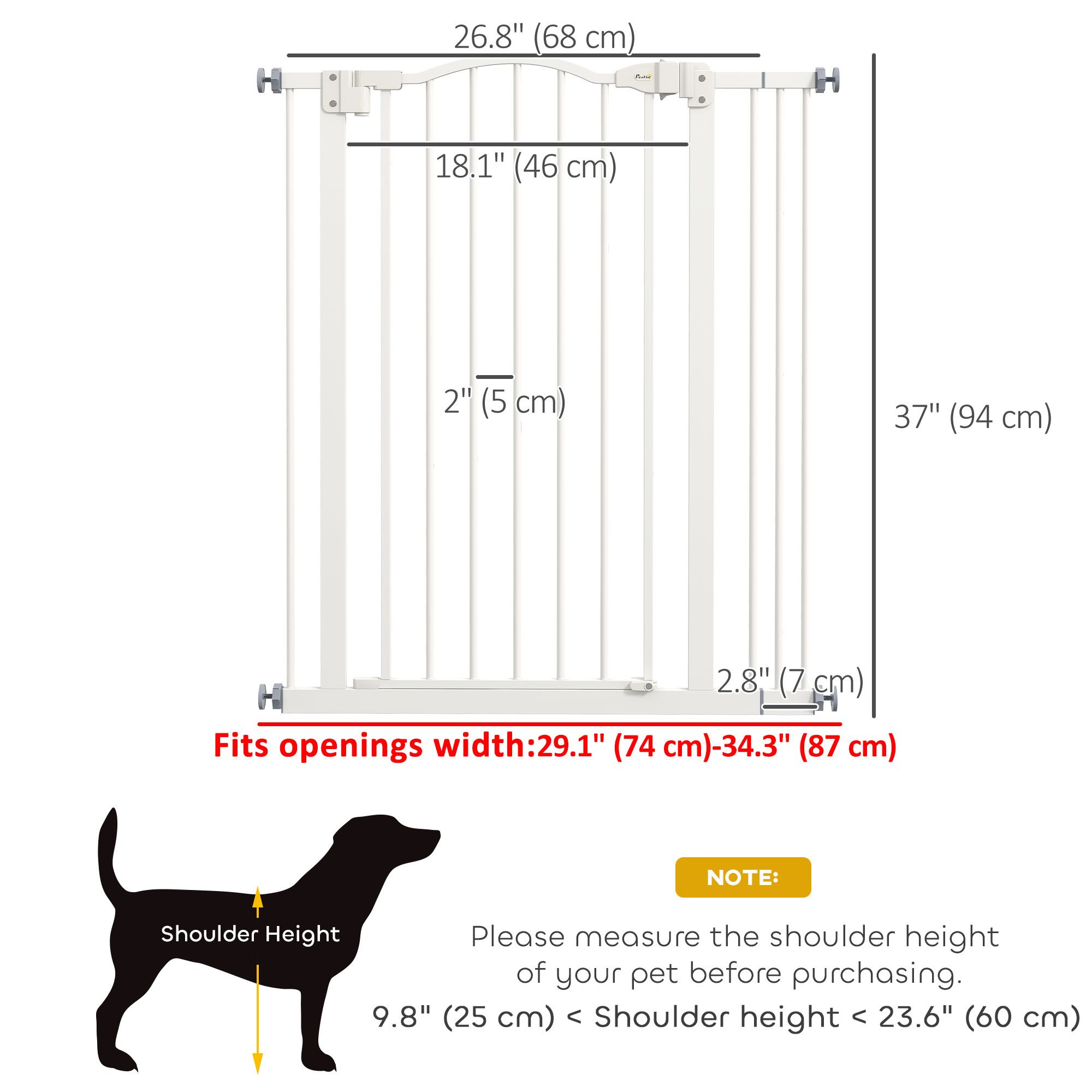 Extra Tall Dog Gate with Door, Pressure Fit, Auto Close, Double Locking for Doorways Hallways Stairs, 29"-34", White