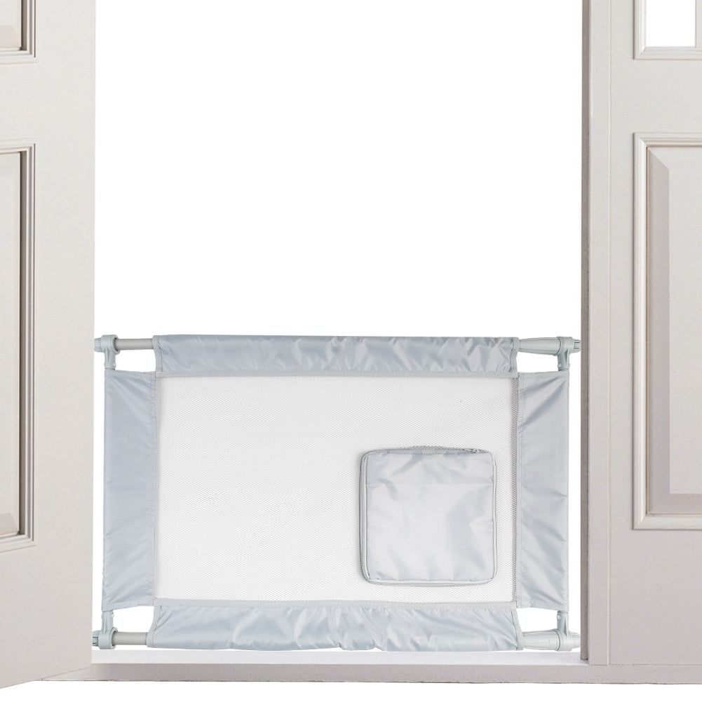 The Pet Life Porta-Gate travel collapsible and adjustable folding dog and cat Gate is the perfect solution for those whom want an easy-to-install and expandable pet gate solution that'll work for various door opening lengths and for those who prefer the non-bulkier and heavier gates commonly available. This unique pet gate easily collapses and rolls up and takes up very little storage space. Both sided poles easily extend and grip onto any door posts or any openings. Simply twist the polls and watch the gate automatically extend and adjust to the proper width settings. When installing always make sure the rubberized grips properly grip the sided surfaces. Features a mesh zippered and polyester entrance door that simply zips open and closed for passage and safety. Short enough to step or walk over and tall enough to prevent smaller dogs and cats from passing through. Both sides of the adjustable poles feature tough rubberized grips that tightly connect to any door sidings or openings from drywall to metal, the poles themselves are composed of heavy duty metal and built-to-last and hold. User must make sure the metal poles are tightly fastened. Available in Multiple Colors.