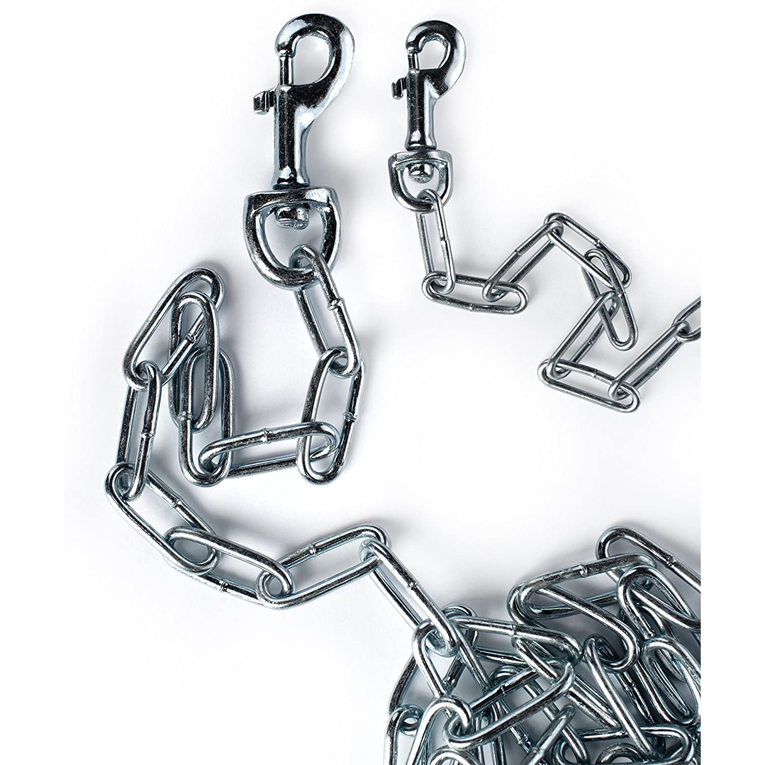 Prevue Pet Products heavy-duty 15Æ tie-out chain 2116 is designed for dogs up to 150 lbs. Zinc plated welded oval links are strong, ensuring your dog stays safe and secure. Premium quality die-cast iron swivel bolt snaps at both ends connect easily and prevent tangling. Heavy duty tie out chain is 15 foot long and 3.8 mm in diameter.