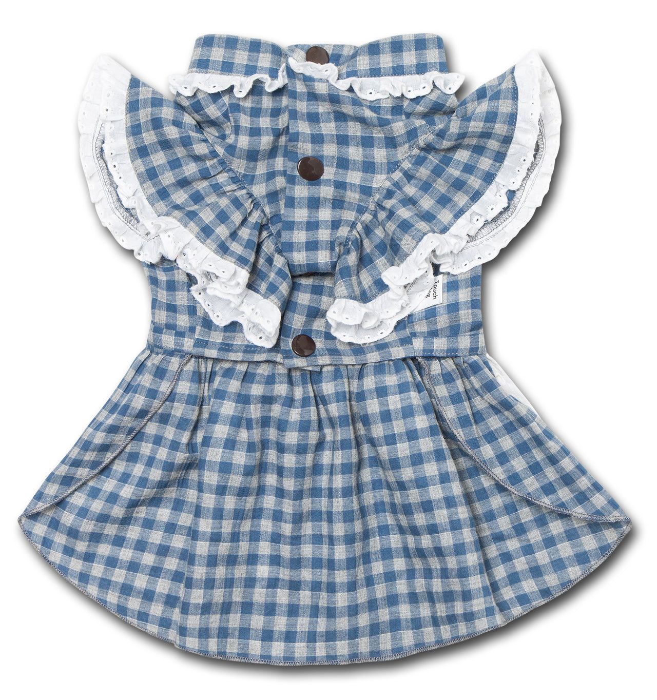 The Touchdog 'I love Poochi' Classical Fashion Designer Plaid Dog Dress is an emblematic-of-its-age vintage designer dog dress that is eloquently pieced together. This beautifully crafted dress features retro ruffles along the sleeves and collar areas with accented buttoned trims and a transparent tablecloth stitched layering by the back-side with a trendy adjustable bow for a custom fit around the chest or waist areas. Howl Grand is this masterpiece! Available in Multiple Sizes and Colors.